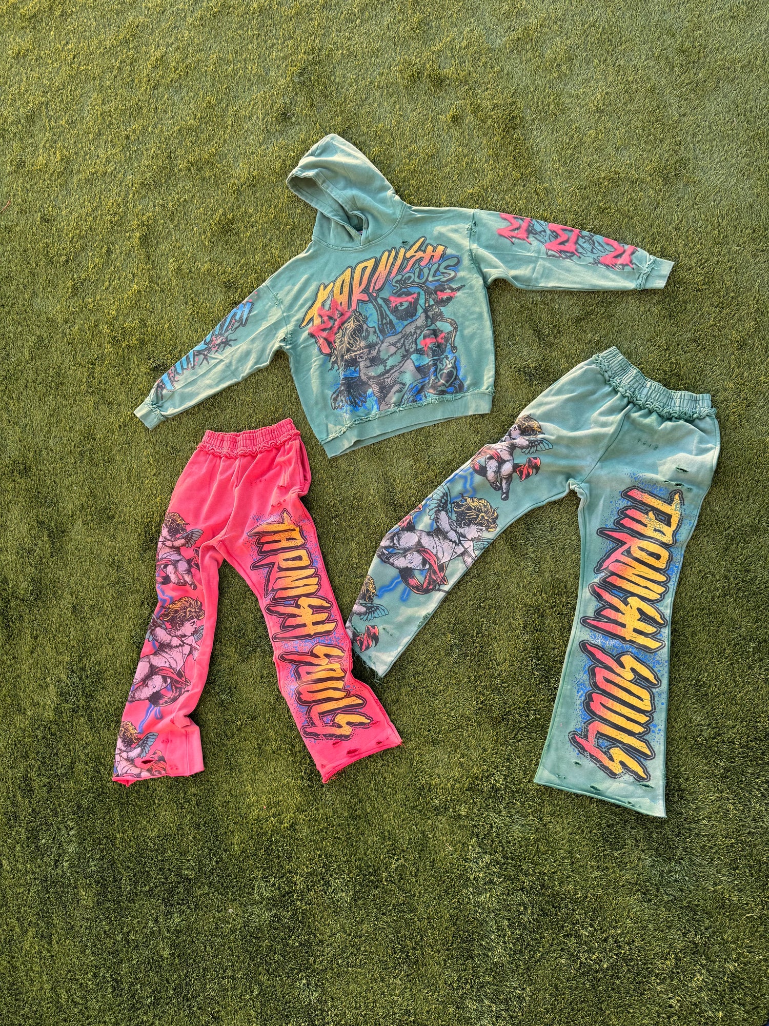 Elevate your streetwear game with Tarnish Souls’ Red Joggers. Crafted for a vintage vibe, these joggers feature distressed rips and tears, combined with a unique acid wash finish. The joggers also boast distinctive backward threading on the top, adding an extra edge to your look. Perfect for those who embrace the struggle and style